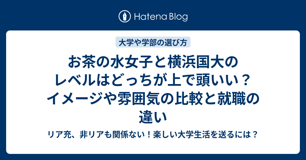 お茶の水女子と横浜国大のレベルはどっちが上で頭いい イメージや雰囲気の比較と就職の違い リア充 非リアも関係ない 楽しい大学生活を送るには
